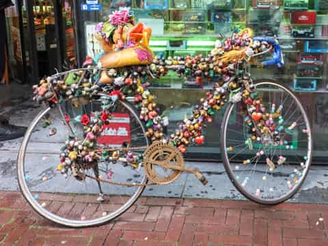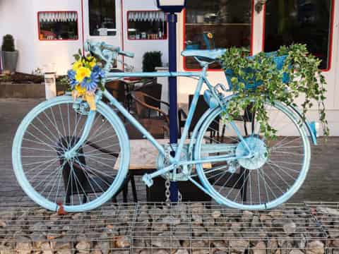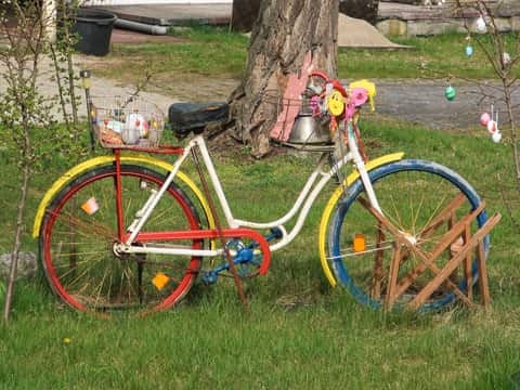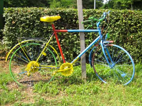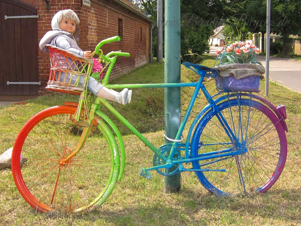 Fahrräder sind schön. Neben ihrer eigentlichen Funktion als Fortbewegungsmittel dienen Fahrräder in aller Welt auch als dekorative Objekte. Diesen Fahrrädern ist diese Seite gewidmet. Die Bilder lassen sich vergrößern und eine Landkarte verrät, wo das jeweilige Fahrrad gefunden wurde. Zudem sind alle Fahrräder auf einer Weltkarte zu finden. Auf meiner Radreise-Webseite www.rolfs-radreisen.de sind noch mehr Fotos von Fahrrädern zu sehen, vor allem von meinem eigenen Fahrrad.